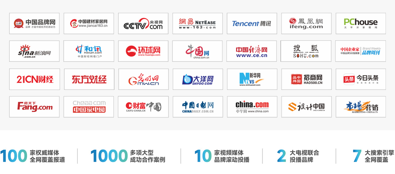 2兩大電視頻道投播 · 7大搜索引擎全面覆蓋 · 10多家視頻媒體展播 · 百家權(quán)威媒體全年報道關(guān)于愉升